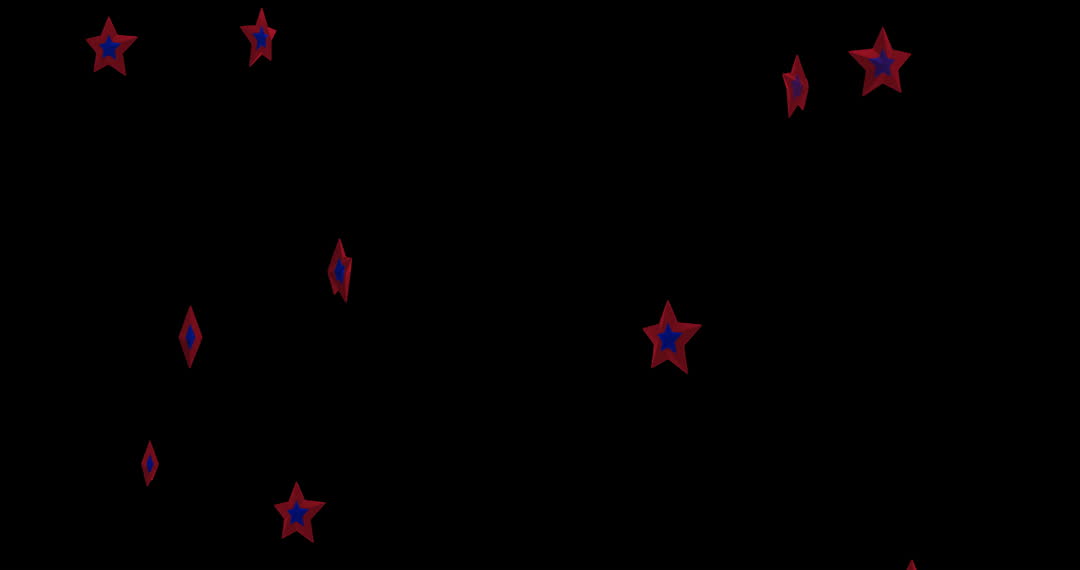 Animation depicting multiple red and blue starred shapes descending repeatedly against a black backdrop. Ideal for use in themes related to American presidential elections, national celebrations, themes of American democracy, Independence Day, marketing materials or videos promoting civic engagement, or any creative content centered on union and unity.