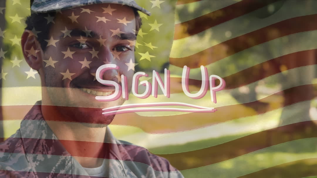- Patriotic Male Soldier and American Flag with Sign Up Message
