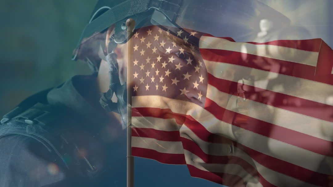 Patriotic Symbolism: Soldier with USA Flag Overlay Video
