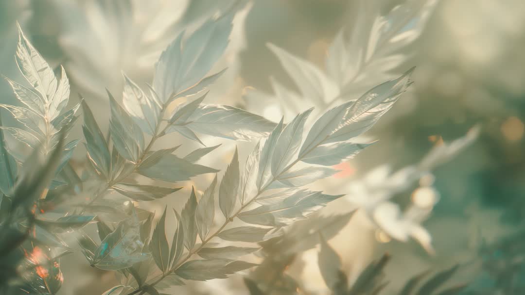 AI Generated Image. Video showcases intricate dance of green leaves as they sway gently in a soft, golden breeze-filled garden setting. The luminous bokeh creates an ethereal effect often ideal for backgrounds reflecting pure tranquility. Perfect backdrop for wellness articles, nature publications, meditation streams, stress-relief applications, and green-themed designs.