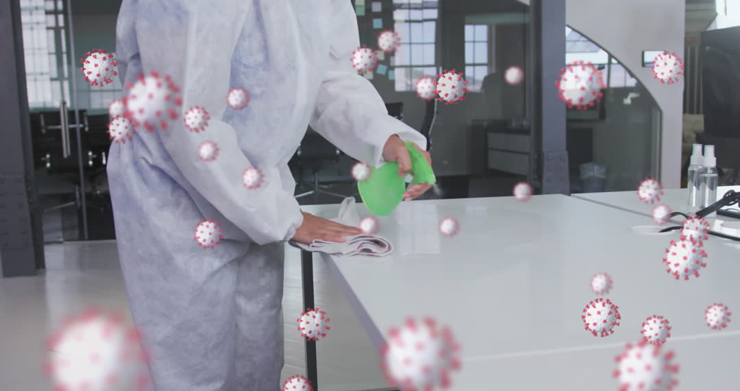 - Person Disinfecting Office Desk With Virus Animation Overlay