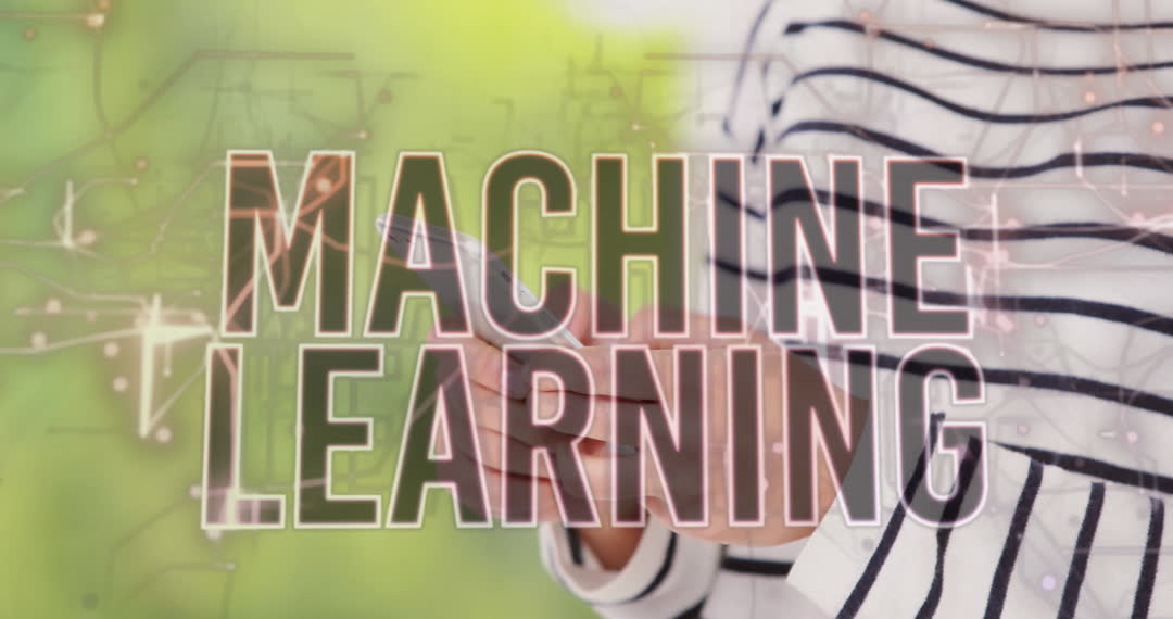 Image shows a person interacting with a concept of machine learning overlaid on an abstract, colorful background. The theme is futuristic and innovative, connecting business and technology. Ideal for use in articles, presentations, or websites focused on technological advancements, data analysis, and digital transformation in various industries.
