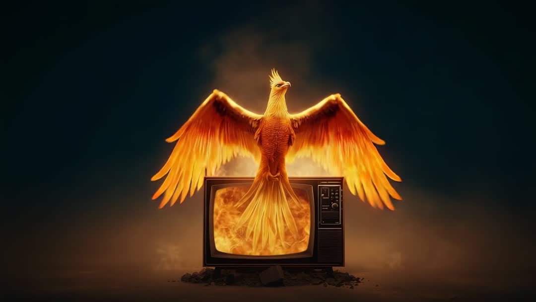 - Phoenix Rising from Television Symbolizing Rebirth and Transformation