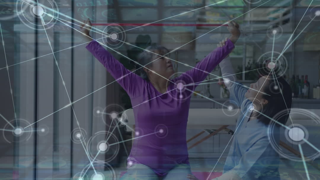 Physiotherapy Session with Digital Network Overlay and Data Interface Video