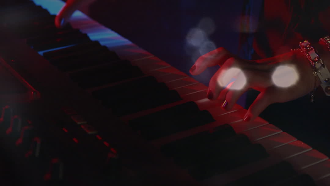Pianist Innovatively Performing Keyboard with City Light Blur Video