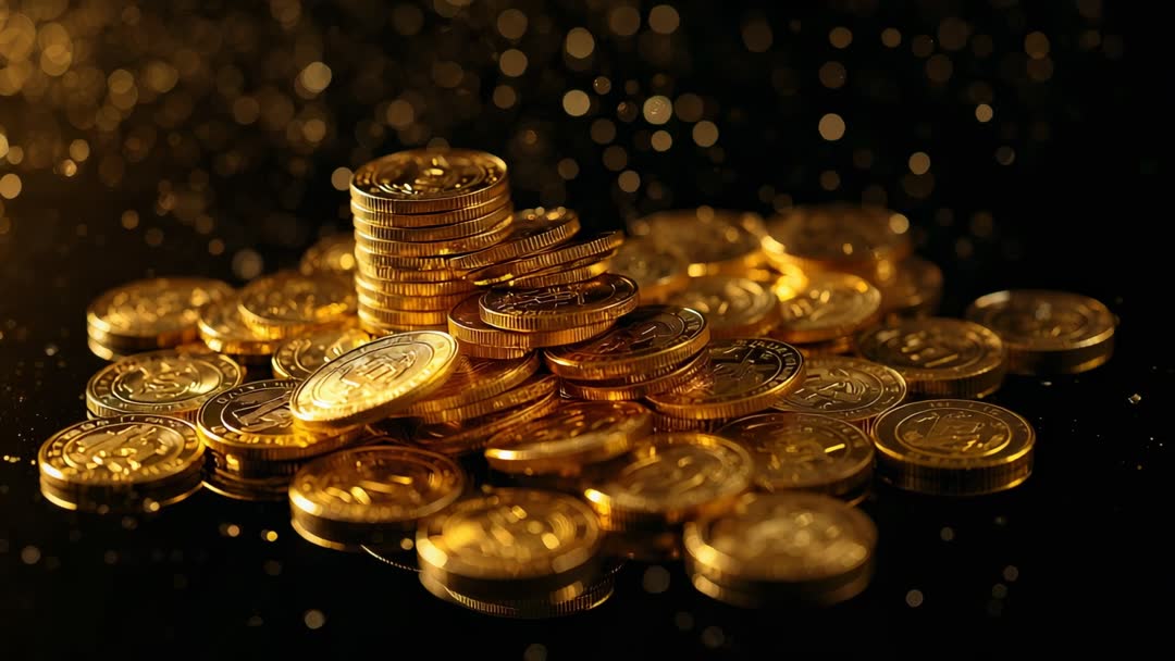 AI Generated Image. Video showing close-up of stacked gold coins glinting against dark bokeh background. Slow-motion focus shifts and moving light revealing coin details and creating dynamic shimmer. Camera using shallow depth of field and macro framing to emphasize texture and edge ridges. Footage loopable and delivering warm golden tones ideal for luxury and finance themes. Use in financial marketing, investment promos, wealth management websites, banking ads, cryptocurrency presentations, and editorial segments about economy and prosperity. Pair with bold text overlay, animated lower thirds, or logo reveal for social media reels, hero banners, or video intros. Color grading favoring warm highlights; recommend adding subtle particle animation or cinematic music for added drama. Available in high resolution for broadcast spots, corporate presentations, and website hero sections.