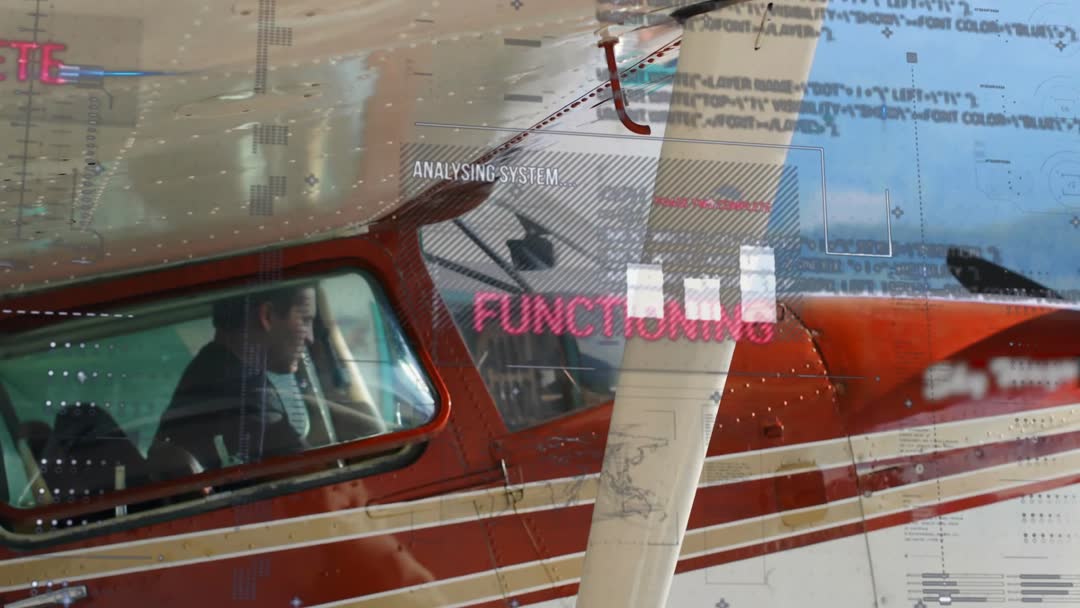 The video captures a pilot operating controls in an aircraft cockpit, complemented by a futuristic heads-up display (HUD) with bar charts and analytical overlays. This depiction emphasizes modern aviation technology and the innovation found in instruments that assist pilots in gauging statuses and adjusting flight parameters. Suitable for using in publications or creative projects about air travel advancements, pilot training, or the integration of technology in modern transportation.