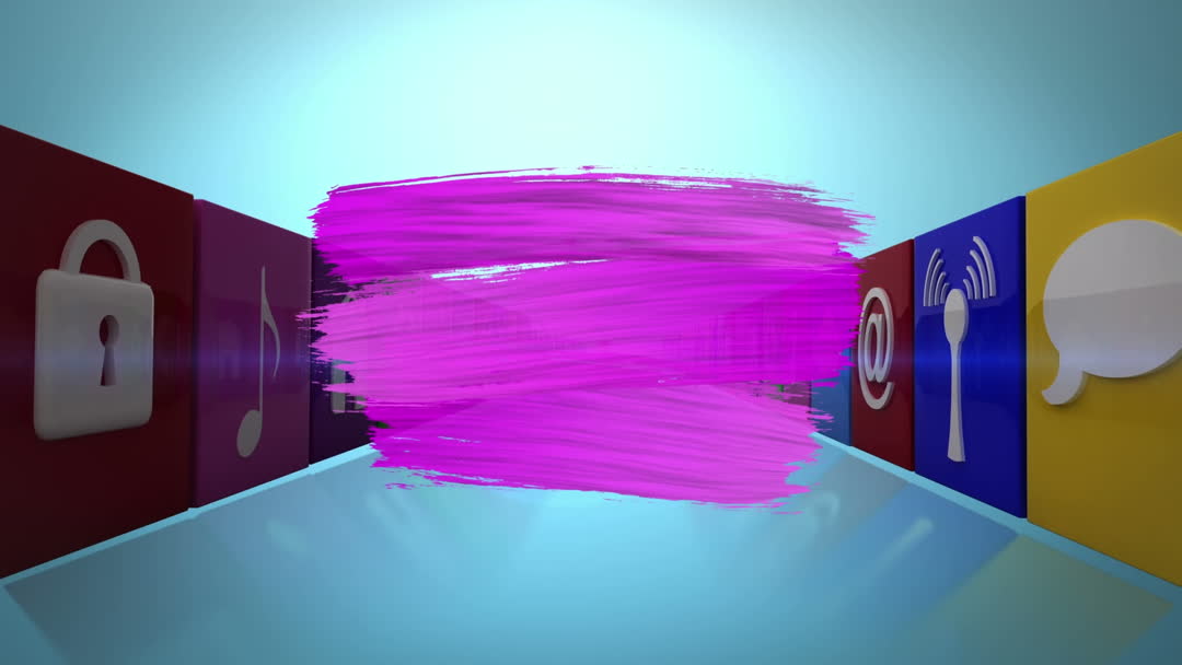 Pink Paint Stroke over Digital Communication and Security Icons Video