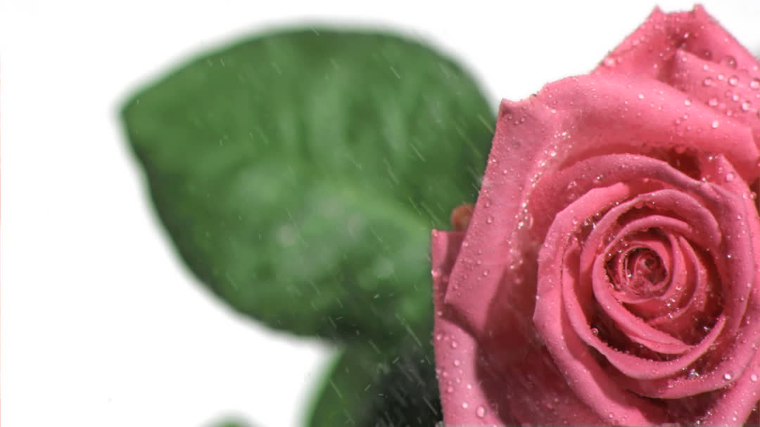 - Pink Rose with Water Droplets in Slow Motion Close-Up