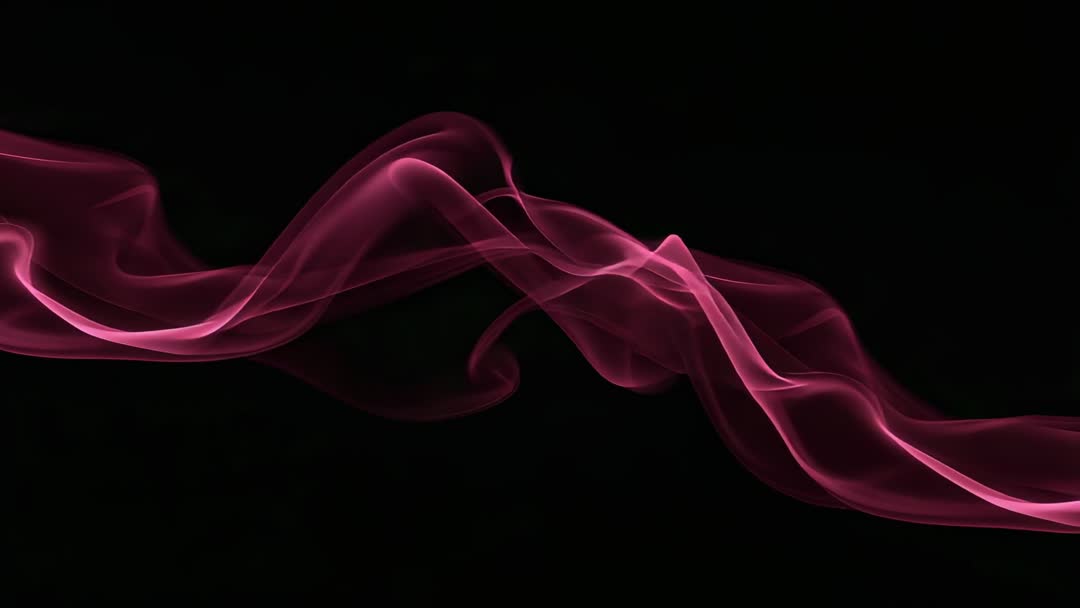 - Pink smoke ribbon flowing and twisting across black backdrop, creating fluid abstract motion
