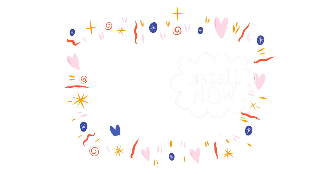 - Playful Shapes and 'Install Now' Message on White Background