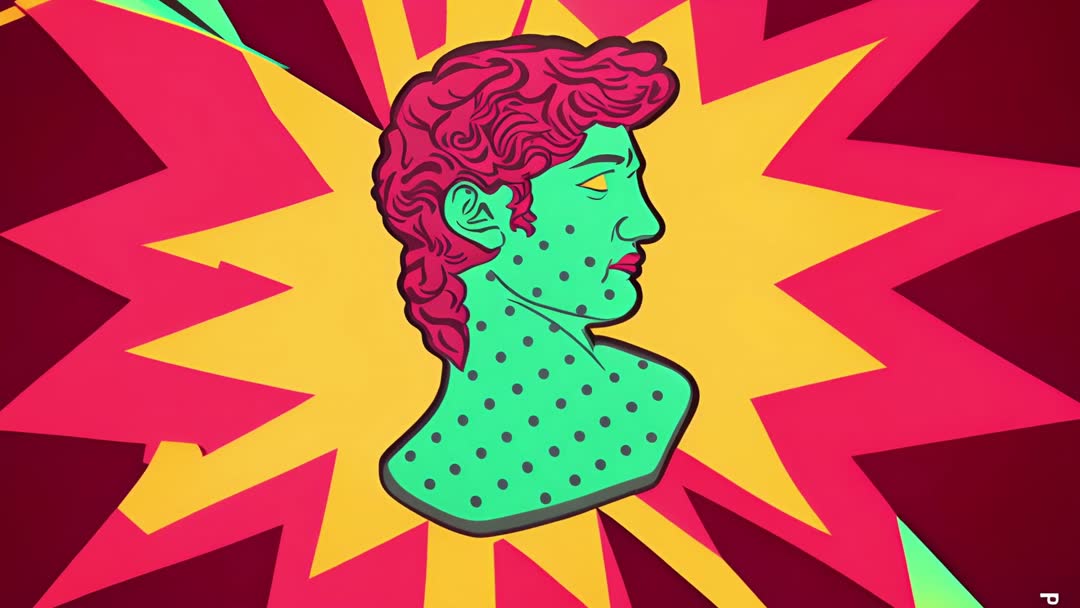 AI Generated Video. This digital pop art illustration showcases a classic statue head rendered in bold geometrical and polka-dot patterns with vibrant colors contrasting against a starburst background. Ideal for modern art projects, retro event marketing, or funky digital designs aiming to capture timeless elegance fused with contemporary flair. This vivid picture can enhance web graphics or printed materials, providing an eye-catching and memorable display.
