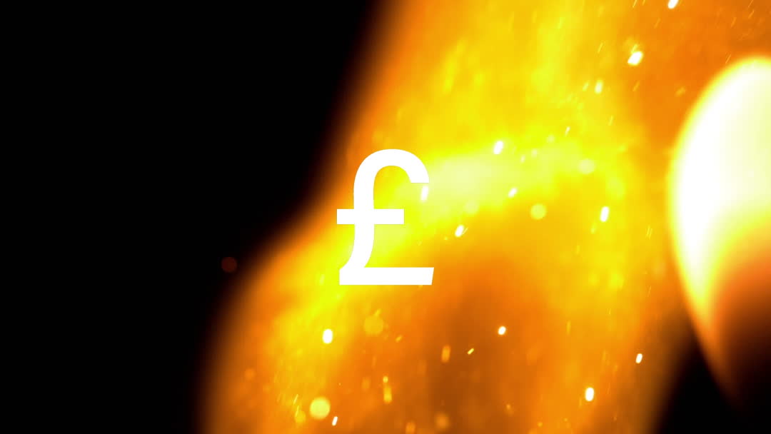 Visual representation of financial concepts using the pound symbol and fire background, symbolizing economic power, currency exchange, financial growth, and market volatility. Suitable for use in finance, advertising, digital media, and educational content relating to UK economies.