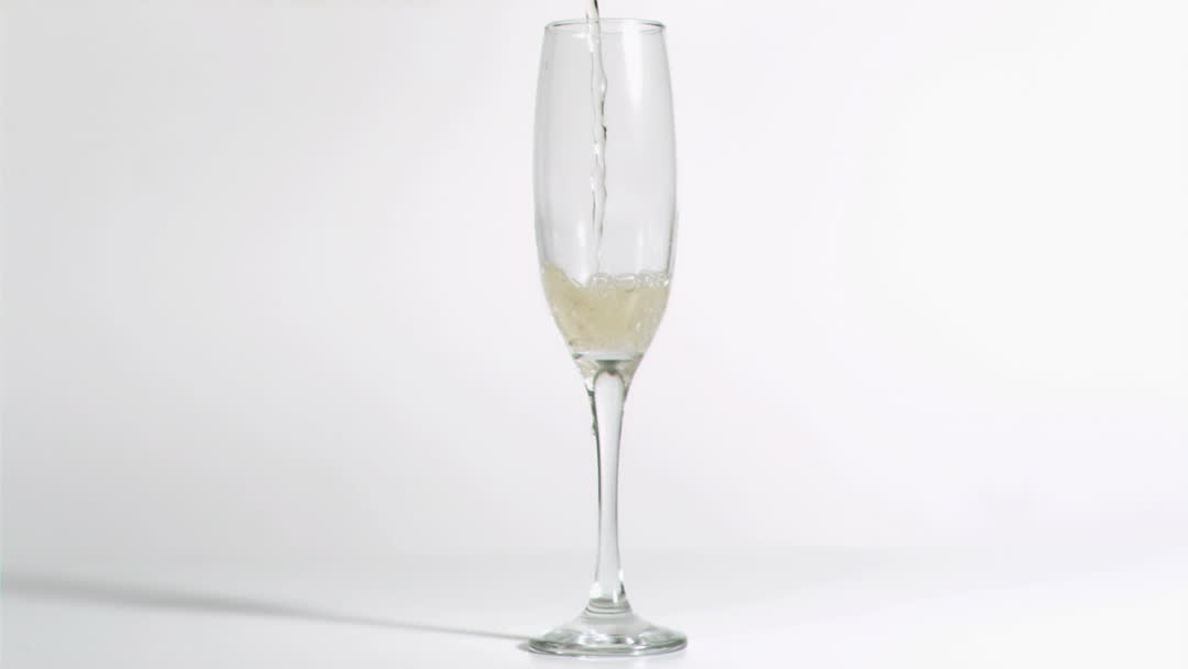 - Pouring Champagne into Flute in Slow Motion on White