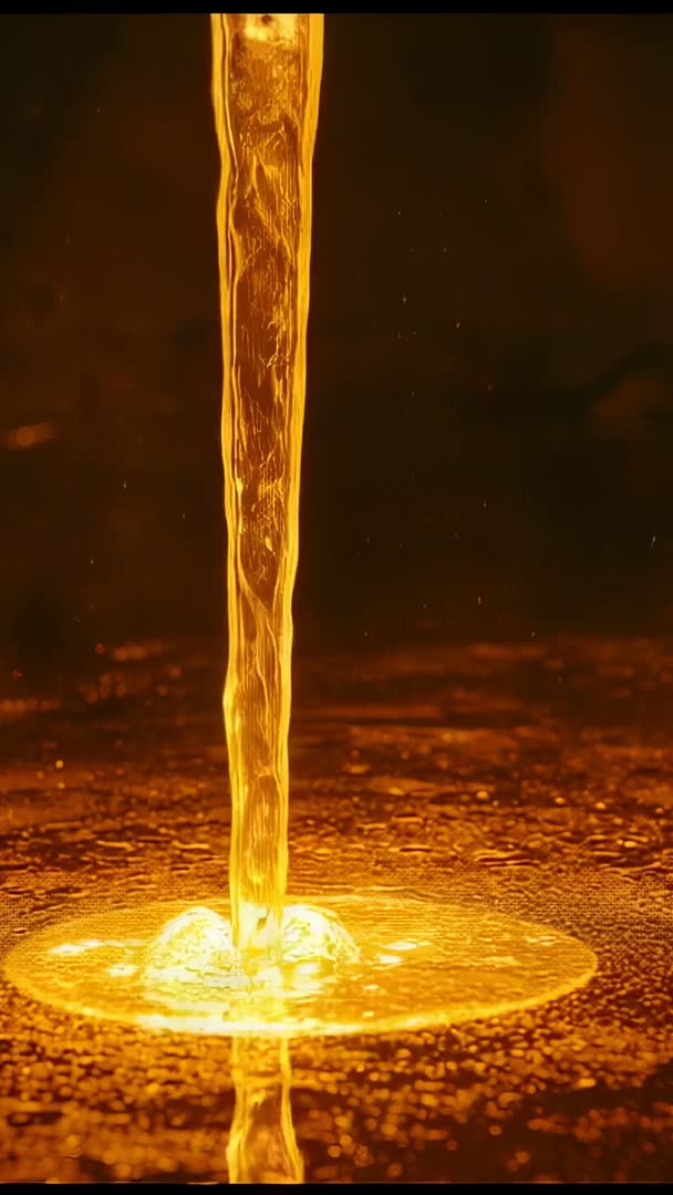 - Pouring Glowing Molten Stream Forming Splash Ring in Shallow Pool | Vertical Macro