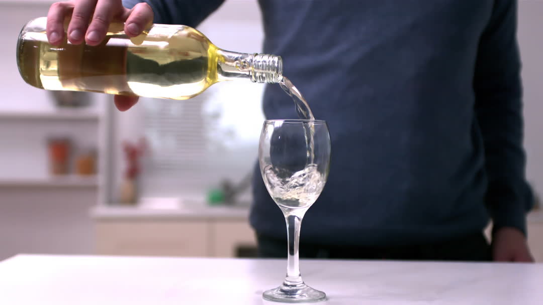 Pouring White Wine into Glass at Home in Slow Motion Video