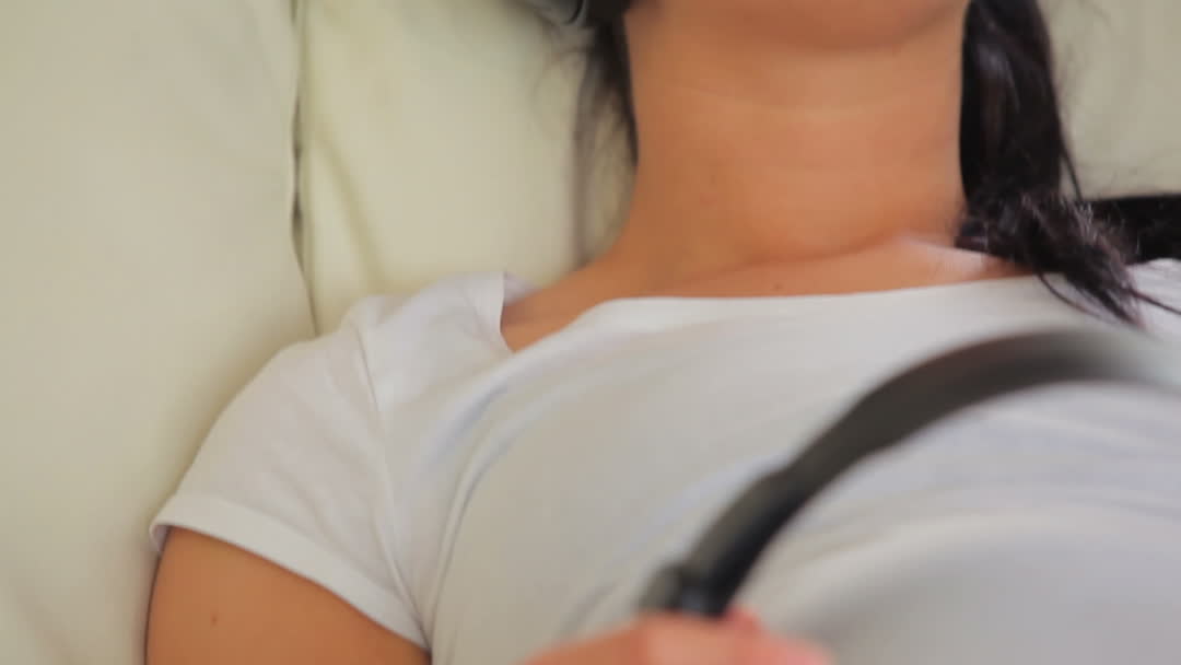 - Pregnant Woman Relaxing and Listening to Music on Sofa