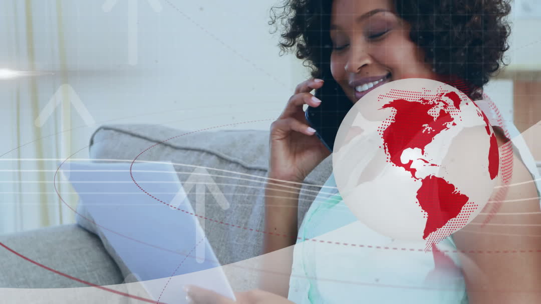A professional woman multitasking by talking on the phone and going through documents, overlaid with a world map animation. This video can be useful in illustrating concepts of global communication, international business, remote work, and modern technology advancements. It is ideal for use in articles about professional women in business, technology trends, or telecommunications.