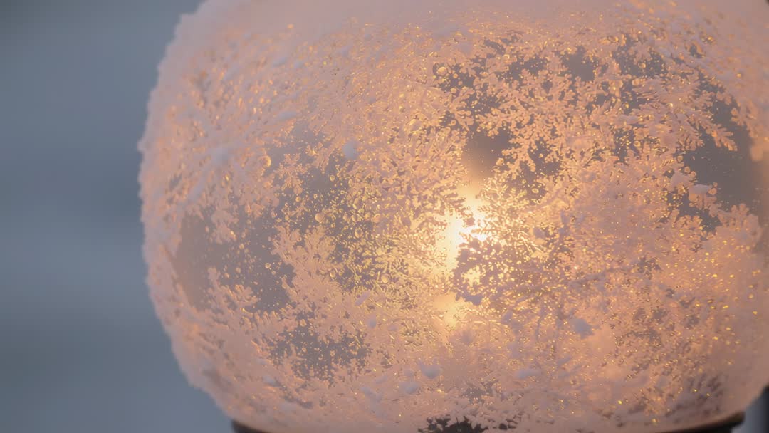 AI Generated Video. Video showing camera pulling back from frosted glass globe lamp, warm amber light glowing through delicate ice crystals at dusk. Close-up reveal focusing on textured frost and glass reflections while background falling into soft blue bokeh. Cinematic pacing working well for slow-motion edits, title sequences, holiday opener, product reveal, or mood-building background for commercials and social media. Footage pairing well with seasonal branding, home decor campaigns, winter festival promotions, and ambient interior design montages. Color grading opportunities with cool blues and warm gold contrast for dramatic feel. Loop-friendly clip for screensavers, storefront displays, online banners, and broadcast lower-thirds. Ideal for 4K timelines, slow ramps, and crossfade transitions to enhance visual storytelling.