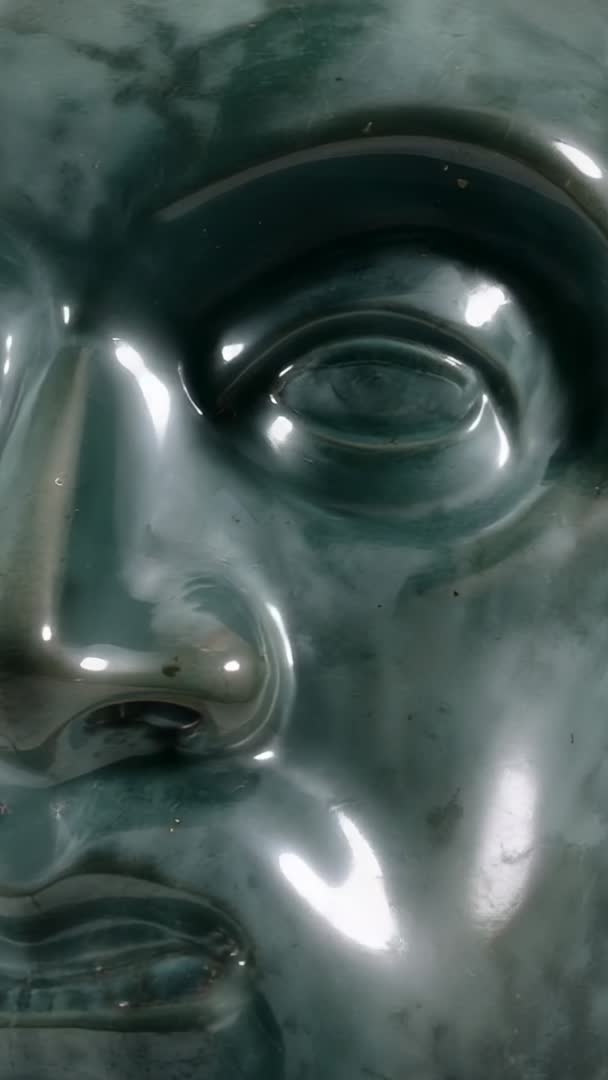 - Pulling back revealing green jade face sculpture with glossy veining vertical video
