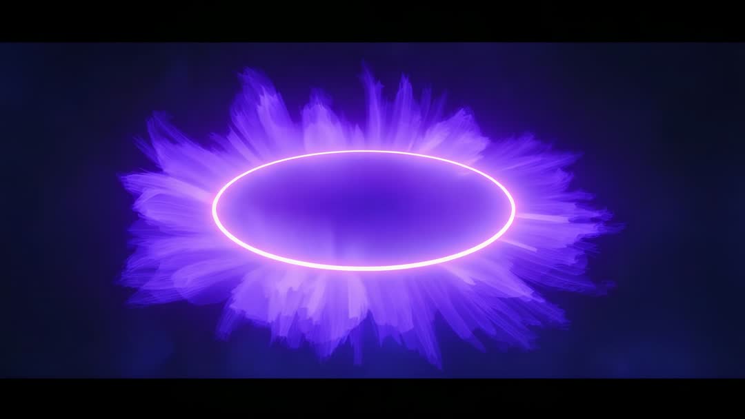 AI Generated Image. This video frame captures a vibrant neon-bright elliptical ring that creates a dynamic aura of purple energy, with jagged spikes radiating outward in a dark void. Its digital aesthetic and futuristic feel are suitable for technology-themed content, music videos, or digital art displays. This visually captivating and energetic imagery can be utilized to create striking visuals for presentations, entertainment, promotional materials, or ads that focus on energy, technology, or modern science fiction concepts.