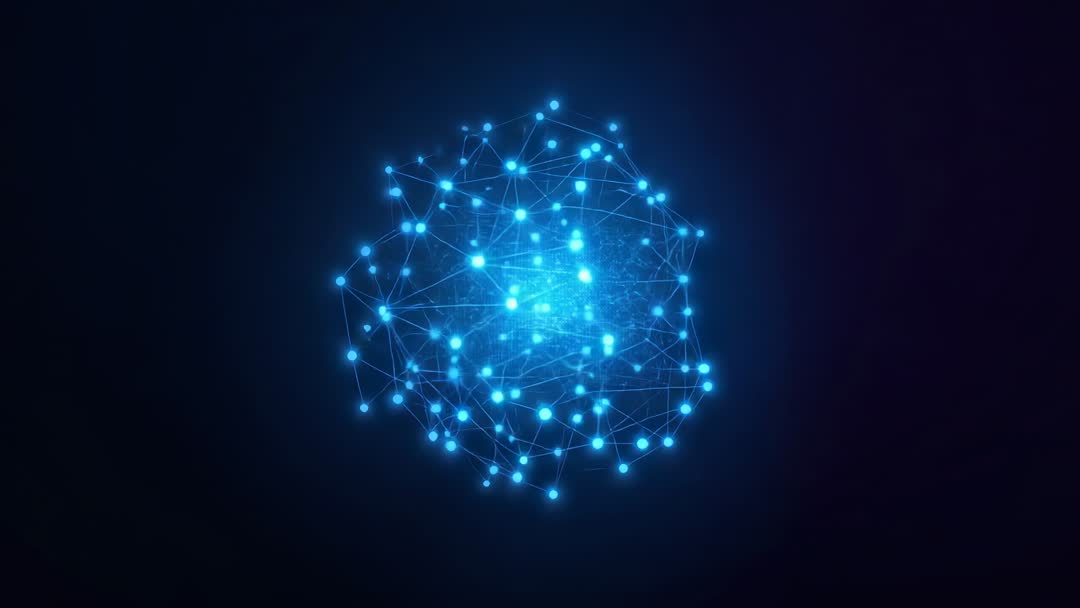 AI Generated Video. Looping video clip showing pulsating network orb composed of glowing nodes and connecting lines, core emitting bright blue pulses and subtle particle motion. Suiting technology, artificial intelligence, data science, cloud computing, cybersecurity and network infrastructure projects. Serving as hero background for websites, presenting dynamic intro for presentations, opening explainer videos, providing backdrop for conference screens, enhancing headers for social media ads. Color palette featuring deep navy to neon blue gradient, high contrast for text overlay. Editing tips: reducing brightness for overlaying light text, applying slow zoom for added motion, looping seamlessly for continuous playback, pairing with ambient electronic soundtrack for immersive effect. Suiting 4K displays and adapting to color grading workflows, ideal for brands seeking modern high-tech visual identity.