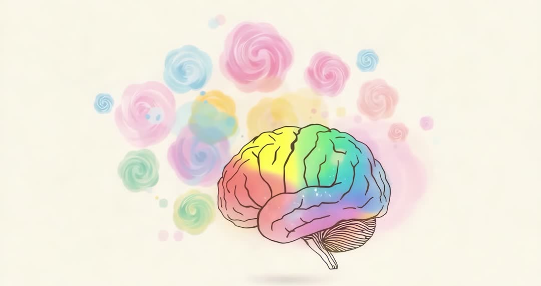 - Pulsating Stylized Brain with Pastel Swirls Indicating Creativity