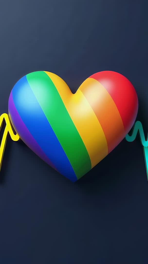 AI Generated Image. Featuring vertical, loopable clip of pulsing 3D rainbow heart sending smooth heartbeat waveform across deep navy backdrop. Presenting vivid multicolor bands, glossy highlights, and rhythmic pulse motion for dynamic visual energy. Suiting pride campaigns, LGBTQ+ awareness, wellness and heart health messaging, social media reels and stories, event intros, and charity fundraisers. Suggesting overlays like bold headline text, logo reveal, upbeat music sync, or color grading to match brand. Delivering eye-catching centerpiece for mobile-first promotions and modern digital content.