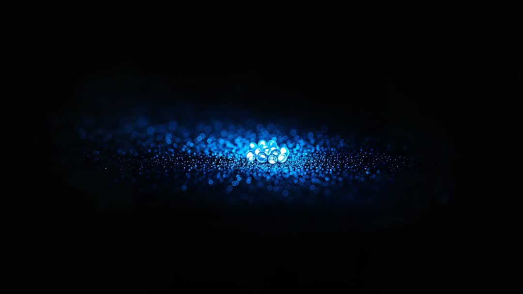 - Pulsing Blue Bead Cluster Emitting Luminous Glow on Dark Surface with Bokeh Trail