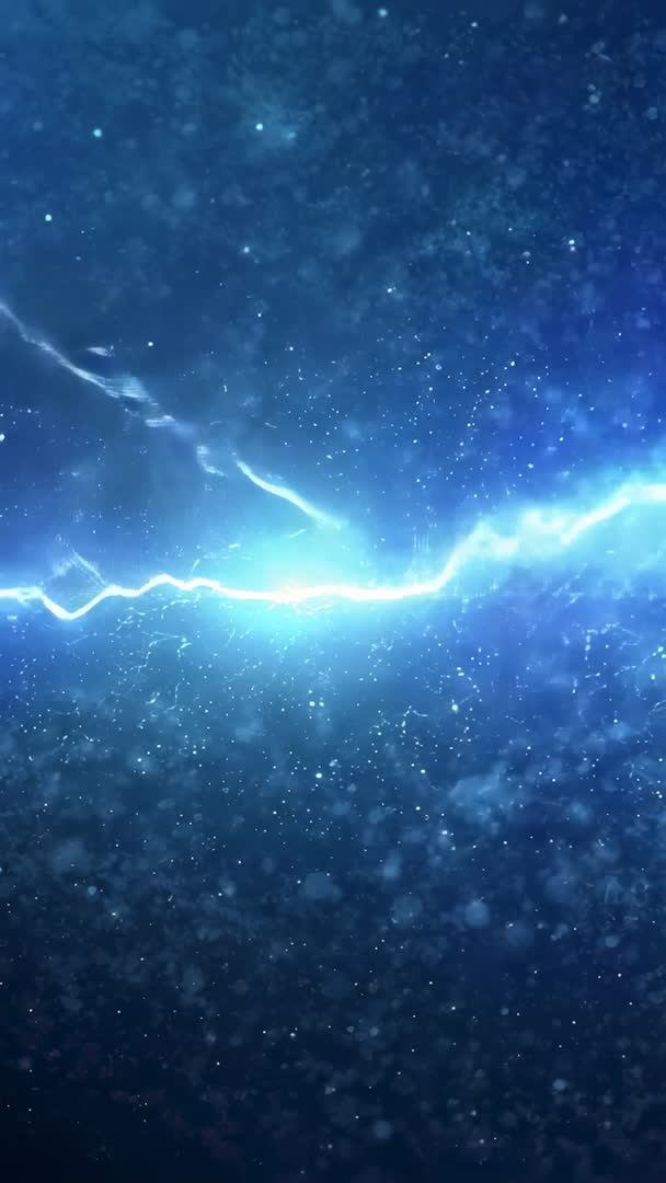 AI Generated Image. Featuring pulsing blue lightning arc with flaring bright core and sparking branching bolts across deep cosmic void. Particle dust and starfield drifting and twinkling, creating depth and dynamic motion. High-contrast electric blue palette with intense core flare and subtle lens glow. Vertical format optimized for mobile screens and portrait video projects. Loop-ready with smooth edges for continuous playback. Perfect for technology promos, sci-fi trailers, music visualizers, title sequences, event visuals, mobile wallpapers, social media vertical content like Reels and TikTok, VJ loops and background for product reveals. Suitable for layering under text and logo animations, enhancing intros and transitions, or using as atmospheric backdrop for science and space content. Delivering cinematic energy and futuristic mood for marketing, streaming and live performance projects.