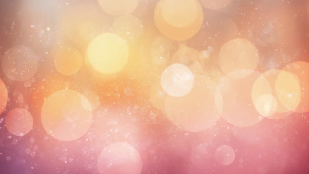 - Pulsing bokeh orbs over warm peach-to-gold gradient with drifting sparkles and dust