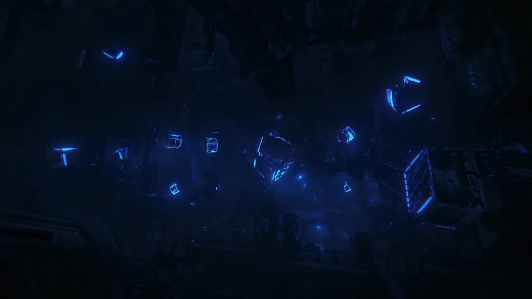 AI Generated Image. Pulsing central cube emitting cyan glow while smaller cubes rotating and aligning around core inside dark industrial chamber. Faint digital particles drifting through scene, neon edges and subtle bloom creating cinematic sci-fi mood. Strong contrast and deep shadows making vibrant cyan highlights pop. Ideal for background loop in tech product launch, UI hero banner, sci-fi trailer, game cinematic, VJ performance, electronic music visuals, corporate technology presentation. Pairing with color grading, glitch VFX, logo reveal overlays, lower third animations, title sequences. Seamless loop friendly, high resolution render suitable for 4K timelines, long form content, motion design projects. Including clear negative space for text or logo placement and multiple frames for cutting into edits.