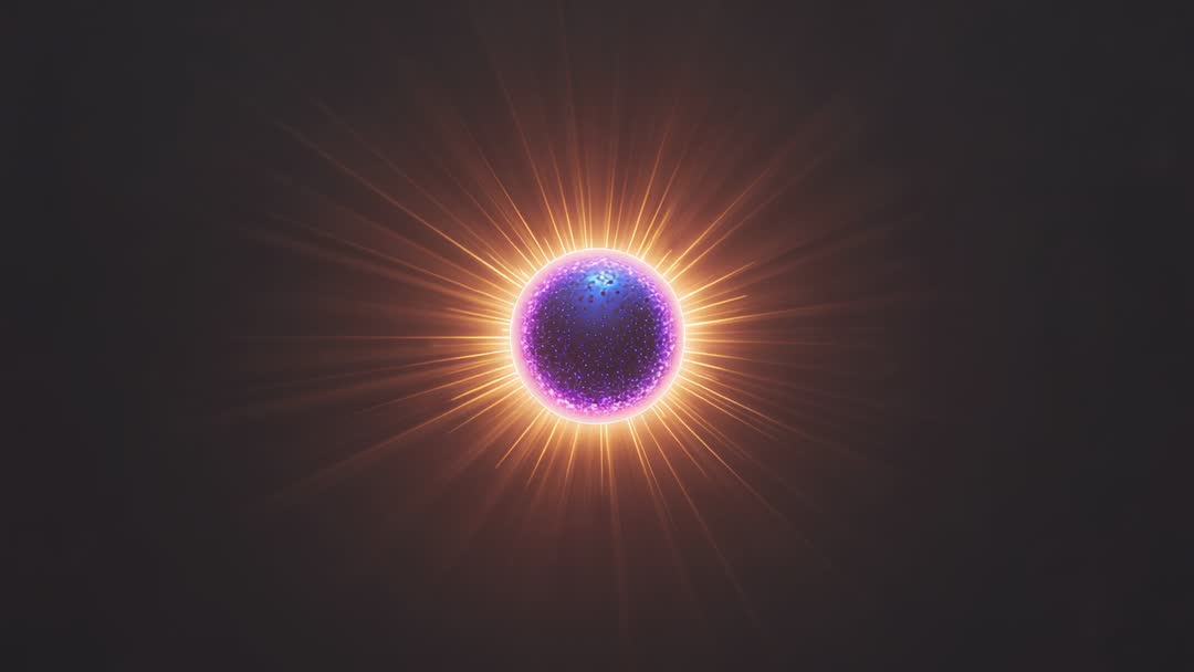 AI Generated Image. Showing pulsing energy orb charging purple core while radiant orange halo expanding and light rays bursting outward. Featuring fine particle specks drifting around core and textured surface glowing with speckled luminescence. Conveying futuristic, energetic, mysterious mood ideal for sci-fi and technology themes. Working well as looping motion graphic for intros, title sequences, app splash screens, website hero loops, social media promos, and game cinematics. Supporting overlay text and logo placement with dark negative space and strong center focal point. Providing high-contrast color palette for color grading and animation integration. Useful for advertising campaigns, presentation slides, album covers, event posters, and educational visuals about energy, physics, or space.