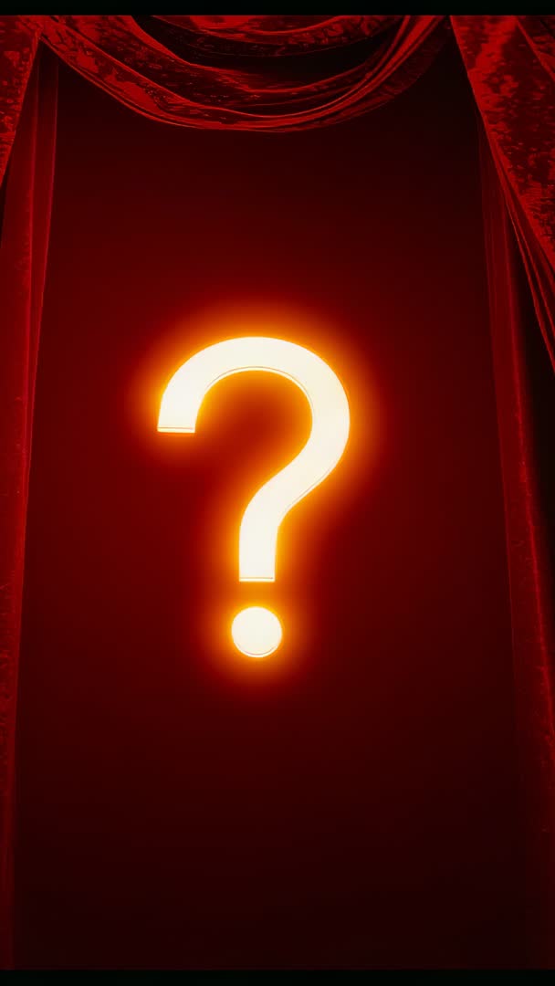 AI Generated Video. Vertical cinematic clip presenting pulsing golden question mark against red velvet curtains, emitting warm glow and dramatic contrast. Working well for teaser campaigns, countdowns, reveal moments, mystery promotions, event announcements, social media ads, Instagram Reels, TikTok, YouTube Shorts, and title cards. Allowing quick looping, color grading adjustments, text overlays, logo reveals, and ambient sound design. Serving as intro for product launches, mystery giveaways, theatrical trailers, streaming promos, quiz shows, interactive stories, or email headers. Editing tips: placing short headline at top, adding bass hit and riser, matching pulse timing to beat, exporting vertical 9:16 for mobile platforms.