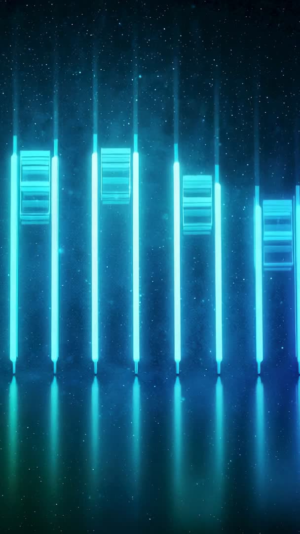 Pulsing neon cyan audio bars fluctuating over starfield vertical motion background Video