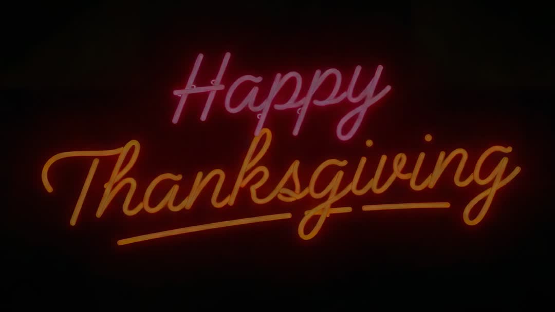 - Pulsing Neon 'Happy Thanksgiving' Sign in Pink and Orange Glow on Dark Wall Video Loop