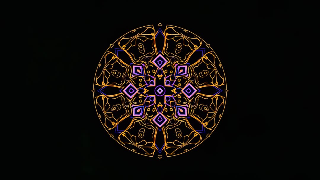 - Pulsing Neon Mandala Looping Kaleidoscope With Cycling Colors and Diamond Motifs