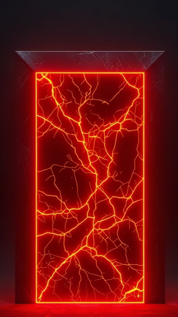 AI Generated Image. Pulsing neon-lit rectangular portal occupying vertical frame, emitting glowing red veins that crawl across cracked surface and reflect on glossy floor. Creating intense sci-fi and cyberpunk mood with high-contrast red glow and abstract energy patterns. Ideal for looping background use in music video backdrops, VJ sets, club visuals, promotional trailers, app splash screens, game loading screens, and streamer overlays. Providing vertical 9:16 format and loop-ready composition, supporting immersive mobile and social content, motion graphics projects, and futuristic UI demonstrations.