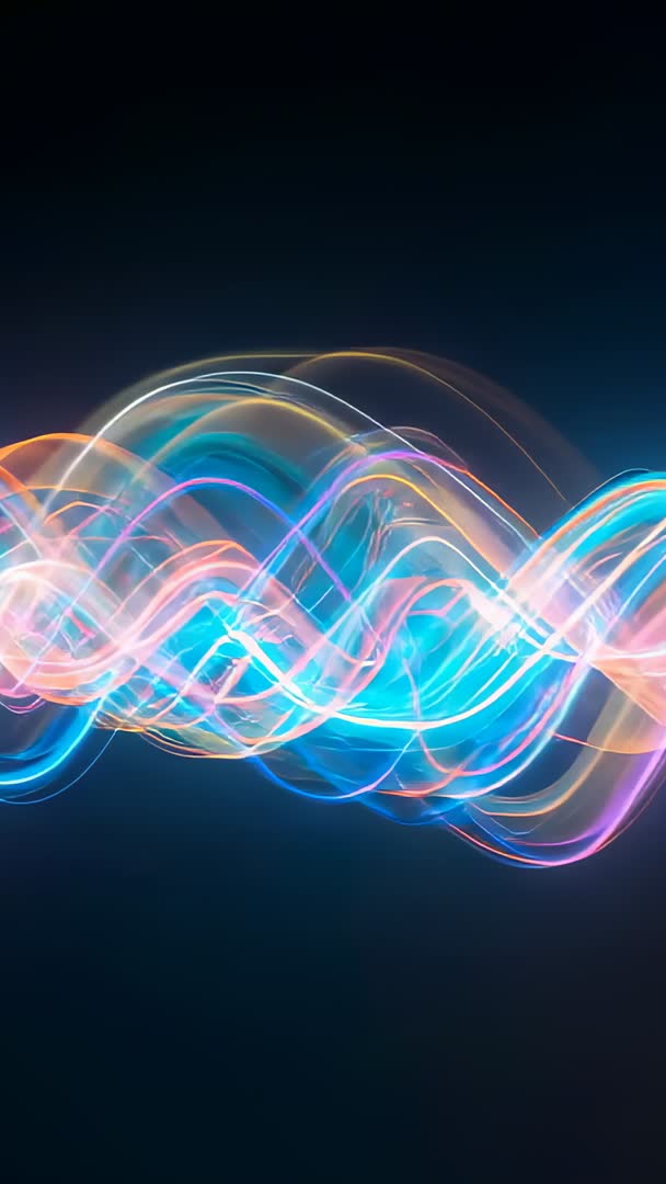 AI Generated Image. Vertical clip showing pulsing neon ribbons weaving across dark studio, creating overlapping luminous loops and flowing gradients. Suiting mobile background, social media story, app intro, music visualizer, concert VJ loop, product promo, title sequence. Motion design tips: looping clip for continuous playback, adding overlay text or logo with soft drop shadow, adjusting hue for brand color, syncing playback to audio beat for music projects. Deliverable optimized for 9:16 vertical displays, offering high contrast for foreground readability and strong visual impact for short-form video, ad creative, and UI backgrounds.