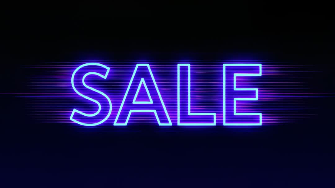 AI Generated Video. Glowing neon SALE text pulsing with magenta and blue scanline streaks, creating high-energy retro-future vibe. Perfect for online retail promo, social media stories, website hero banners, email headers, in-store digital signage, and livestream overlays. Using looping playback for animated headers and countdown sequences, pairing with synthwave audio to amplify atmosphere, and overlaying bold discount copy for clear call-to-action. Offering high contrast and simple color grading for brand matching. Including wide safe area for text and logo placement, enabling fast integration into multi-platform campaigns and seasonal sales promotions.