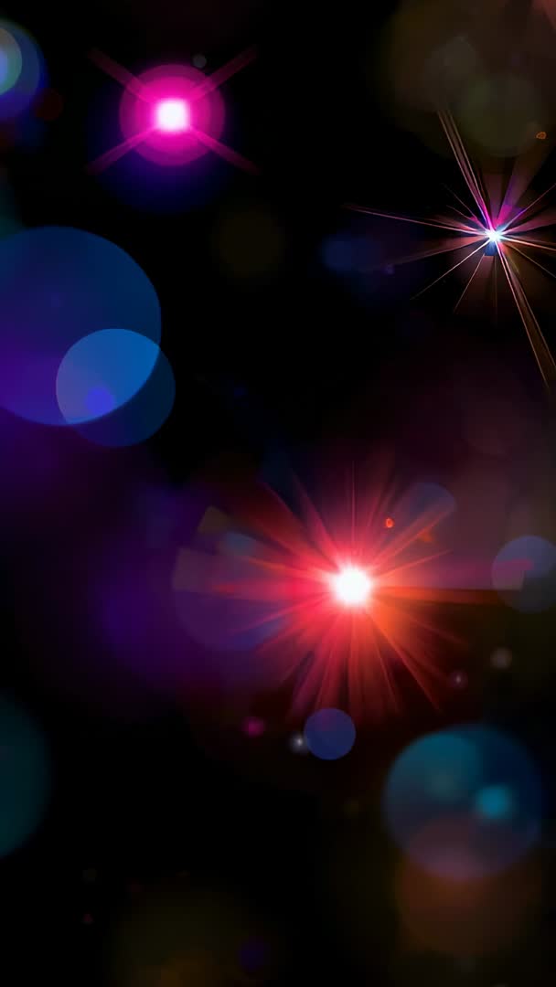 AI Generated Image. Vertical neon starburst clip showing pulsing red core, magenta highlights and drifting blue bokeh against deep black. Featuring layered lens flares, radiant star points and soft glowing orbs creating dynamic depth and vibrant color contrast. Loopable composition designed for vertical 9:16 displays and mobile screens, providing smooth continuous motion for repeated playback. Ideal for enhancing social media stories and reels, powering music promo intros, supporting live VJ visuals and concert backdrops, or reinforcing energetic branding in ads and trailers. Pairing suggestion: place bold headline text or logo in dark center area, use light or neon text colors for high contrast. Technical note: high saturation and contrast, works well as overlay layer or background behind semi-transparent UI elements.