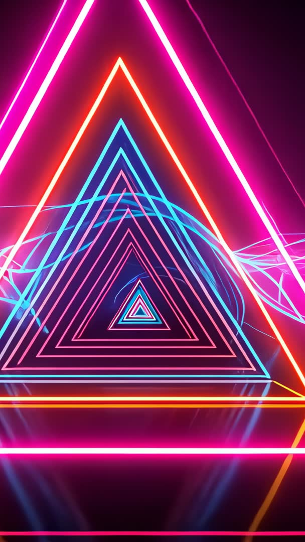 AI Generated Image. Featuring pulsing neon triangles forming concentric tunnel while cyan wave flowing across reflective floor, producing prismatic glow and hypnotic depth. Vertical loop optimized for mobile and widescreen vertical playback, with strong color contrast and seamless repeat for continuous motion. Ideal for social media reels, music visualizers, DJ livestream backdrops, club and festival projection, event promos, title intros, mobile wallpapers, streaming overlays, electronic brand campaigns. Ready for use in VJ sets, motion graphics projects, video intros, promotional ads, and stage LED mapping. Suggestions for customization include tempo syncing with audio, color grading to match brand palette, and masking layers for overlaying text or logos.