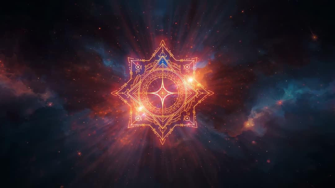 - Pulsing Ornate Sigil Radiating Light into Nebula — Cosmic Glyph Motion Loop