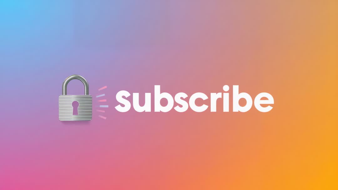 AI Generated Image. Presenting pulsing silver padlock nudging bold white subscribe text across warm orange to cool blue gradient with pink accent marks suggesting motion. Short looping video clip designed for quick attention and clear CTA emphasis. Working well for subscription campaigns, paywall intros, membership promos, email sign-ups, streaming channel overlays, landing page heroes, app onboarding screens, and social media ads. Pairing with button animation and sound cue for higher conversion. Offering vector-ready padlock and clean typography for easy brand color swaps and resizing. Delivering modern flat style, high contrast for readability, and seamless loop for smooth playback.