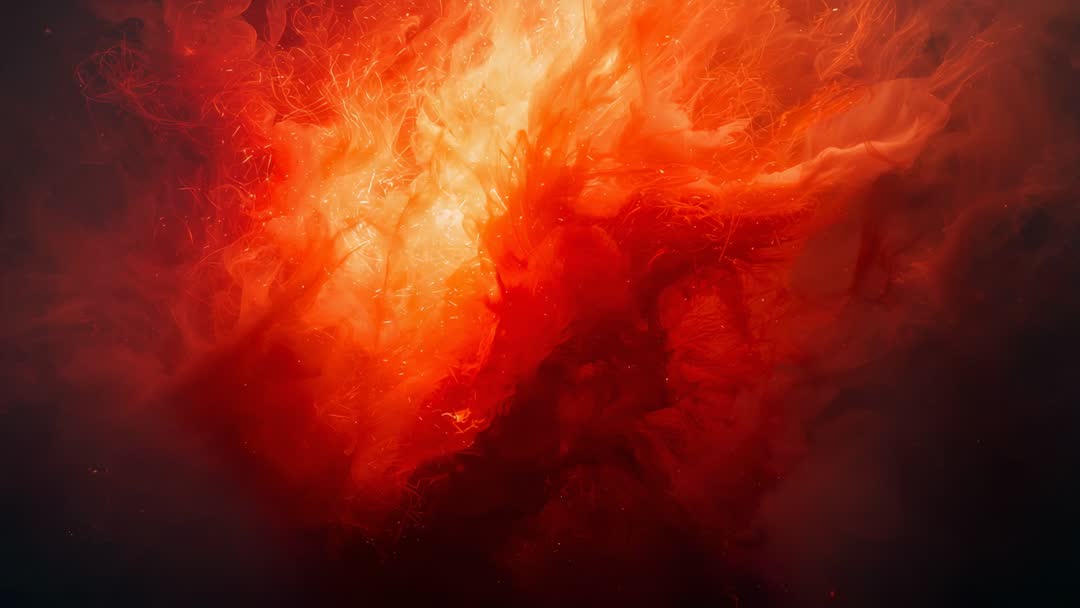 AI Generated Image. Clip showing pulsing red-orange nebula plume emanating from bright core, with flaring light and shifting filaments dissolving into dark backdrop. Fine-grained particles and subtle glow adding depth and cinematic scale. High-contrast color palette emphasizing warm reds and deep shadows, creating dramatic focal point. Working well for sci-fi title sequences, film intros, album artwork, website hero banners, music visualizers, VJ loops, advertising backgrounds, meditation apps, stage projections. Looping-friendly when trimmed with crossfade; color-grading and slow zoom adding motion and emphasis. Overlaying bold type or logo using dark outer areas for legibility. Exporting as short looping clip or layered composition for advanced VFX and motion design.
