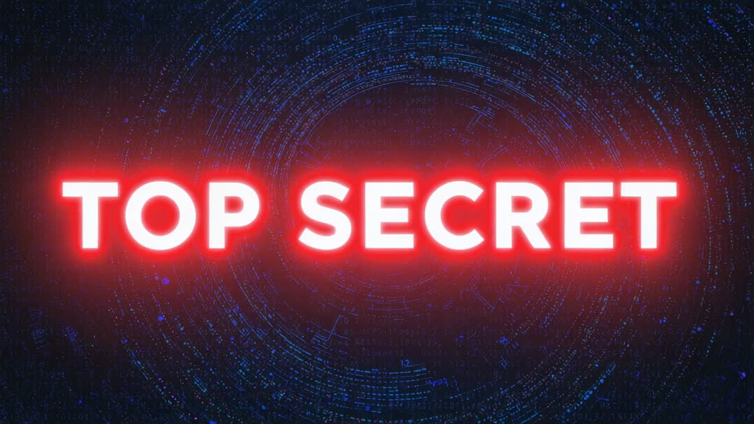 AI Generated Image. Pulsing TOP SECRET neon headline glowing red over concentric digital radar rings, with blue data points signaling activity. Perfect for cybersecurity presentations, data breach reports, spy thriller openers, security alert sequences, website hero loops. Motion graphics studios, editorial teams deploying clip for video intros, broadcast stingers, social media ads, training modules. High contrast neon palette supporting dramatic messaging about secrecy, surveillance, threat detection, network security, data privacy. Delivering cinematic cyberpunk vibe suitable for branding, promos, investigative journalism, corporate security communication.