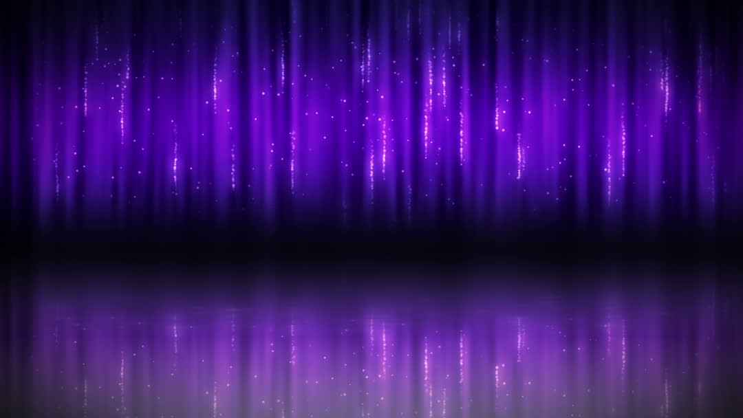 Violet-hued abstract light rays descend with a magical sparkle effect, reflecting fluently on a surface. Ideal for creative backgrounds or themed presentations, the glowing ambiance suits stage backdrops, digital designs, or event posters eager for a cinematic feel.