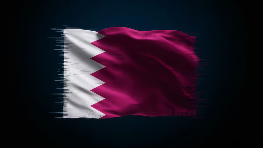AI Generated Image. Video showing Qatar flag waving with serrated nine-point hoist and rich maroon and white colors, featuring glitch scanline digital distortion for modern look. Clip working well for national day campaigns, sports broadcast openers, diplomatic presentations, tourism promotions and corporate event visuals. Motion designers using clip as loopable backdrop for title screens, lower thirds, event openers and transitions. Social media teams using short loop for Instagram reels, Facebook posts and YouTube intros. Production teams integrating clip into broadcast packages, stadium screens and live event visuals. Dark negative space allowing clean compositing and overlaying text or logos while preserving flag detail. Serving patriotic storytelling, contemporary tech-themed campaigns, cultural festival promos and museum exhibits.