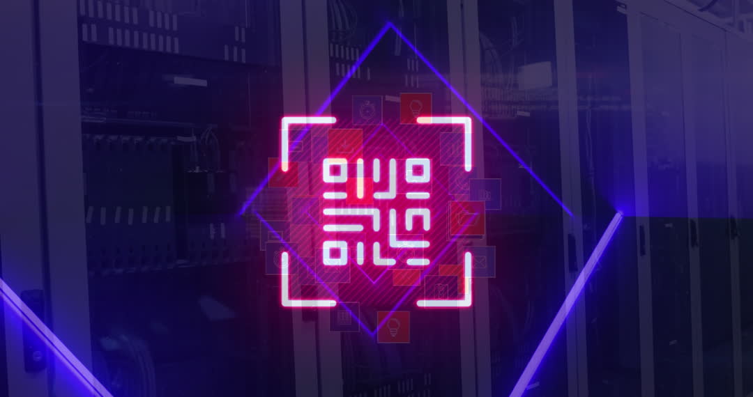 This design features a glowing QR code overlaying computer servers, illustrating data processing and digital communication in a modern setting. It suggests elements of futuristic technology, global finance, and connection in computing. Ideal for use in technology-themed content, cybersecurity presentations, or digital advancements advertising.