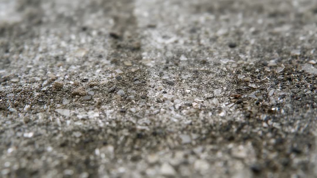 AI Generated Image. Racking focus across rough concrete pavement, revealing central groove and scattered pebbles while creating shallow depth of field and soft foreground and background blur. Neutral gray and brown tones highlighting gritty aggregate texture and tiny shell fragments. Close-up macro detail providing tactile reference for design and VFX work. Useful for urban, industrial, architectural, construction, and environmental projects, plus texture overlays in motion graphics. Works well as loopable B-roll, background for title reveals, social media clips, website hero sections, or product packaging presentations. Recommended edits: apply subtle color grade toward cool or warm tones, add slight speed ramp for dramatic reveal, combine with minimal typography or logo animation for opener. Compatible with HD and 4K timelines and suitable for texture sampling, material creation, and close-up study.